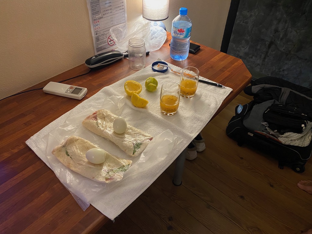 Nous avons bu un café avant d’embarqué, il était comme dire? Est-ce qu’il y a pire que infecte? On avait l’impression de boire de la terre. Et Marco lui a demandé un thé, il s’est retrouvé avec un smoothie qui ressemblait à de l’herbe mâchée par les vaches.