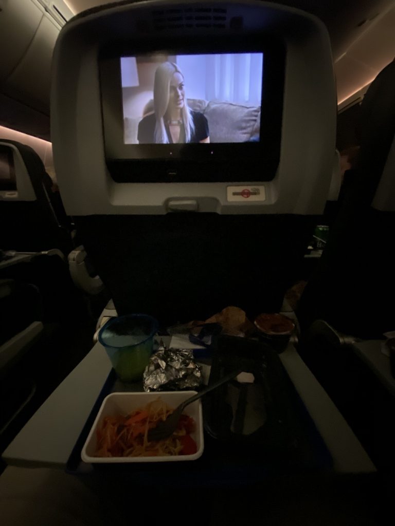 J’ai eu beaucoup de mal à dormir. J’ai donc pu voir un peu des films. Il fallait passer 8h de vol, ce qui est assez important de savoir, c’est qu’à l’origine le vol est de 10h30, gagner 2h30 sur un vol de cette distance, cela fait plaisir.