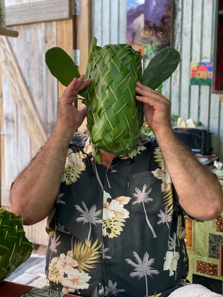 Si avec cela nous ne sommes pas protégés, je ne comprends pas. Pour la petite histoire. Il s’agit d’un panier entièrement réalisé avec des feuilles de palmiers.