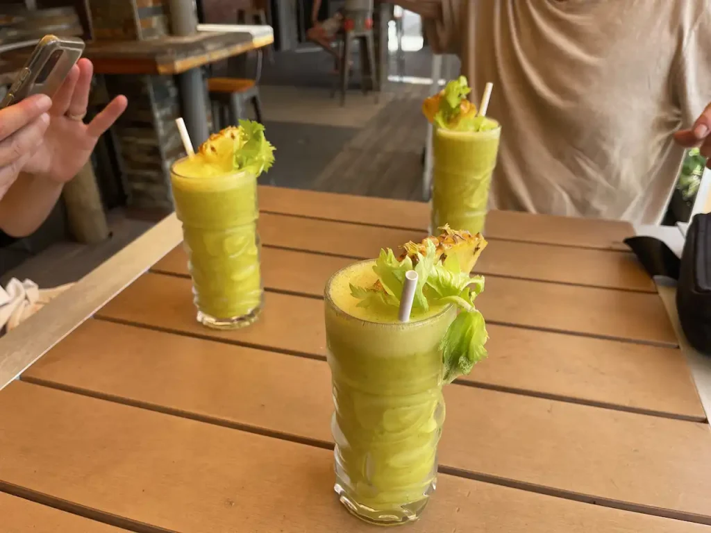 Je ne me souviens plus de ce qu’il y avait dedans, au prochain passage à Tahiti j’irai prendre la photo, mais il y avait du céleri, du gingembre, et ça arrache grave! Même le serveur qui l’a préparé nous a dit qu’il l’a gouté et qu’il le trouvait bien fort.